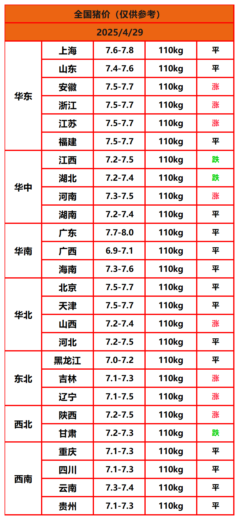 今日猪价 | 2025年4月29日全国猪价行情一览表!