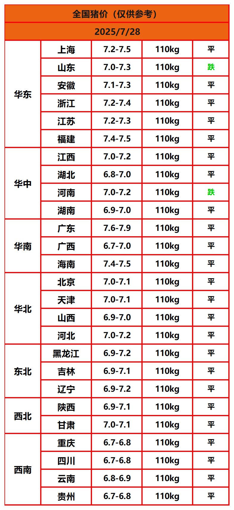 今日猪价 | 2025年7月28日全国猪价行情一览表!