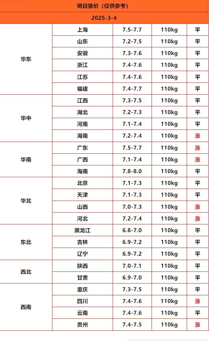 今日猪价 | 2025年3月4日全国猪价行情一览表!