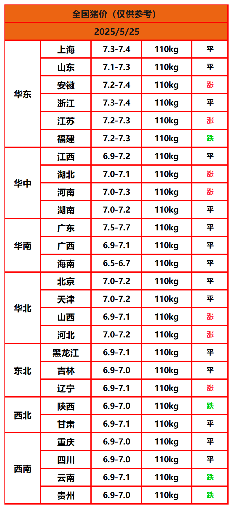 今日猪价 | 2025年5月25日全国猪价行情一览表!