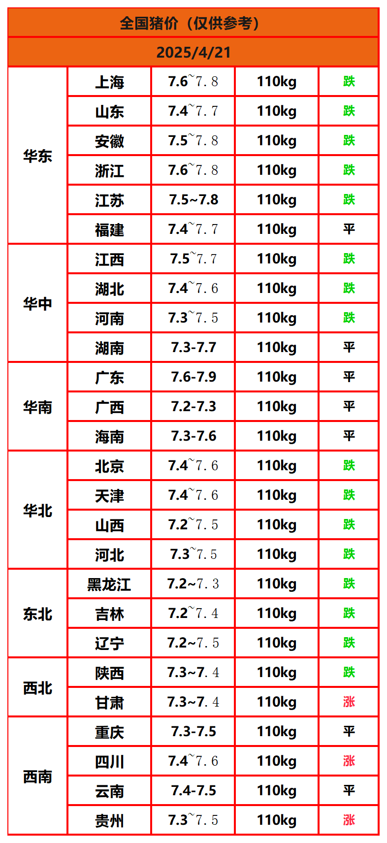 今日猪价 | 2025年4月21日全国猪价行情一览表!
